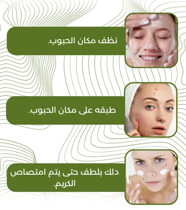 إذا كنت تعاني من حب الشباب الكريم هذا هو أفضل خيار لعلاج هذه المشكلة بسرعة. علاج حب الشباب عن طريق استهداف جذور المشكلة ويعمل على تهدئة الالتهابات وتقليل الاحمرار وتجديد الخلايا الجلدية النتائج تختلف على حسب الحالة لذلك يجب أن تداوم على العلاج